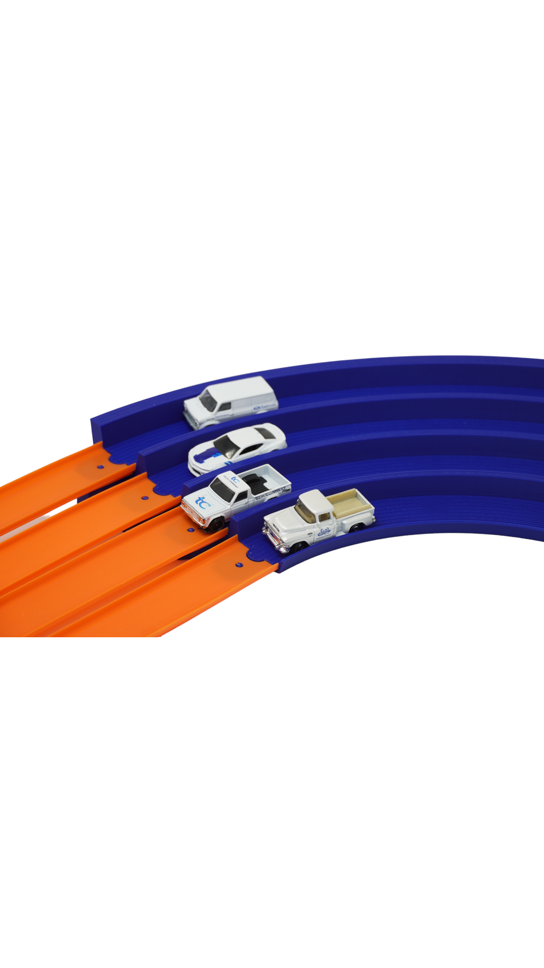 Experience the thrill of high-speed racing with our 4-Lane 90-Degree Banked Turn, proudly handcrafted by a small business in the USA. Specially designed for 1/64 scale cars, this unique track accessory features a dynamic 20-degree slope for adrenaline-pumping, super-fast racing action. Seamlessly integrating with Hot Wheels and Matchbox tracks, it ensures a flawless transition as your cars zoom around the curve. Whether you’re racing with friends or enjoying solo play, this track piece brings the excitement of professional racing circuits right to your home.