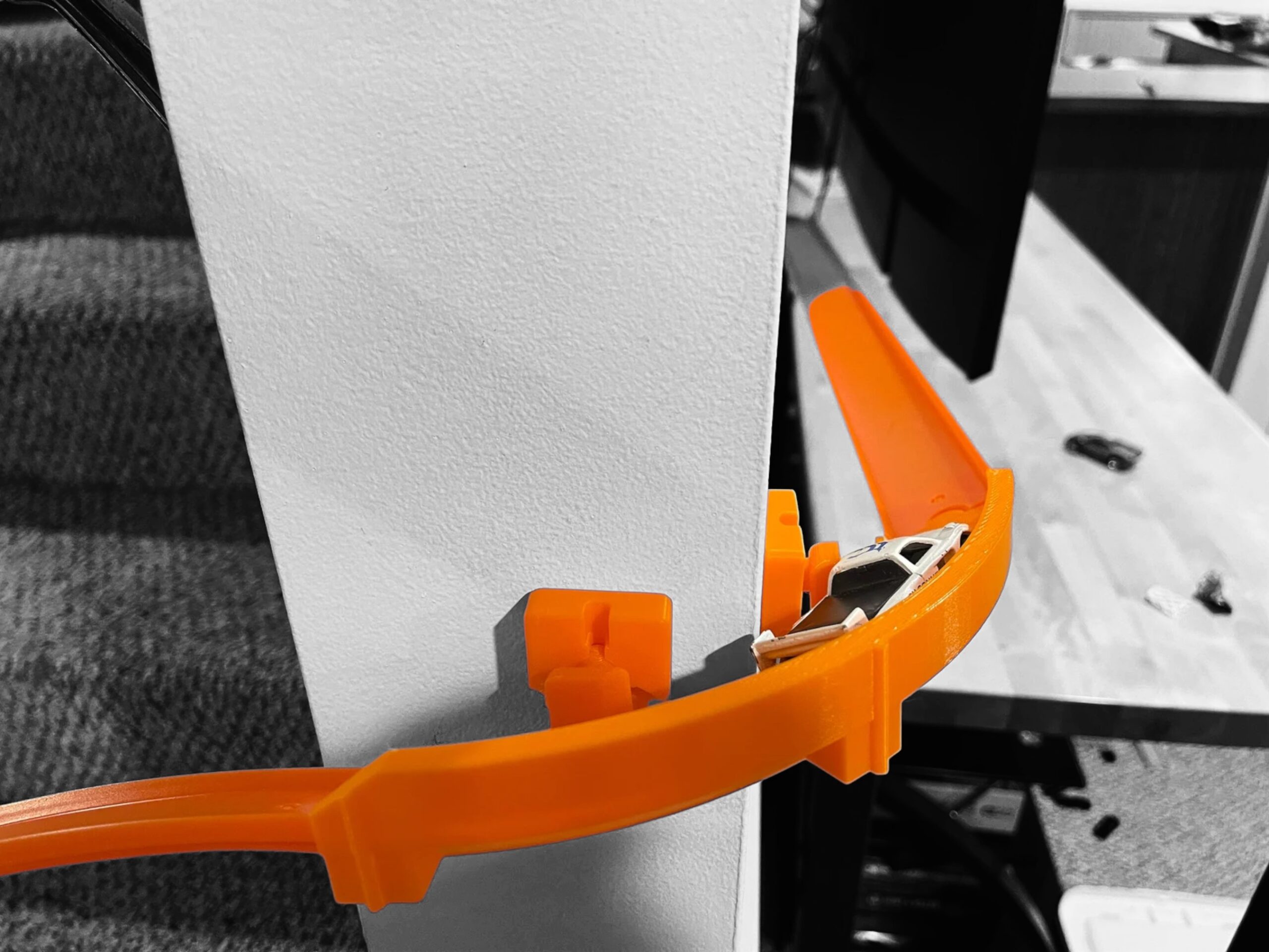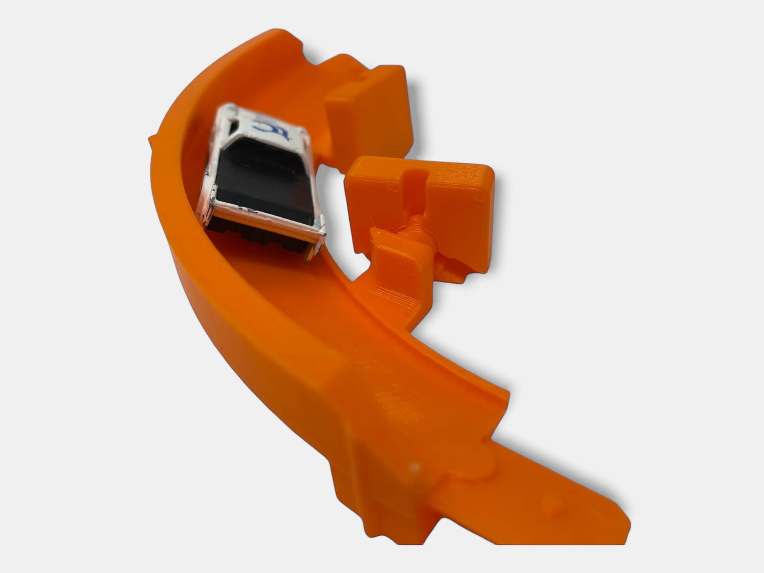 Whether you’re creating a wall-mounted track or a floor layout, the 90 Degree Wall Mounted Banked Turn is compatible with Hot Wheels Track and 1/64 scale cars, offering endless possibilities for creative and exciting races. Crafted from durable, eco-friendly plastic in the USA, this product is a sustainable and fun addition to any racing setup that both kids and adults will love!
