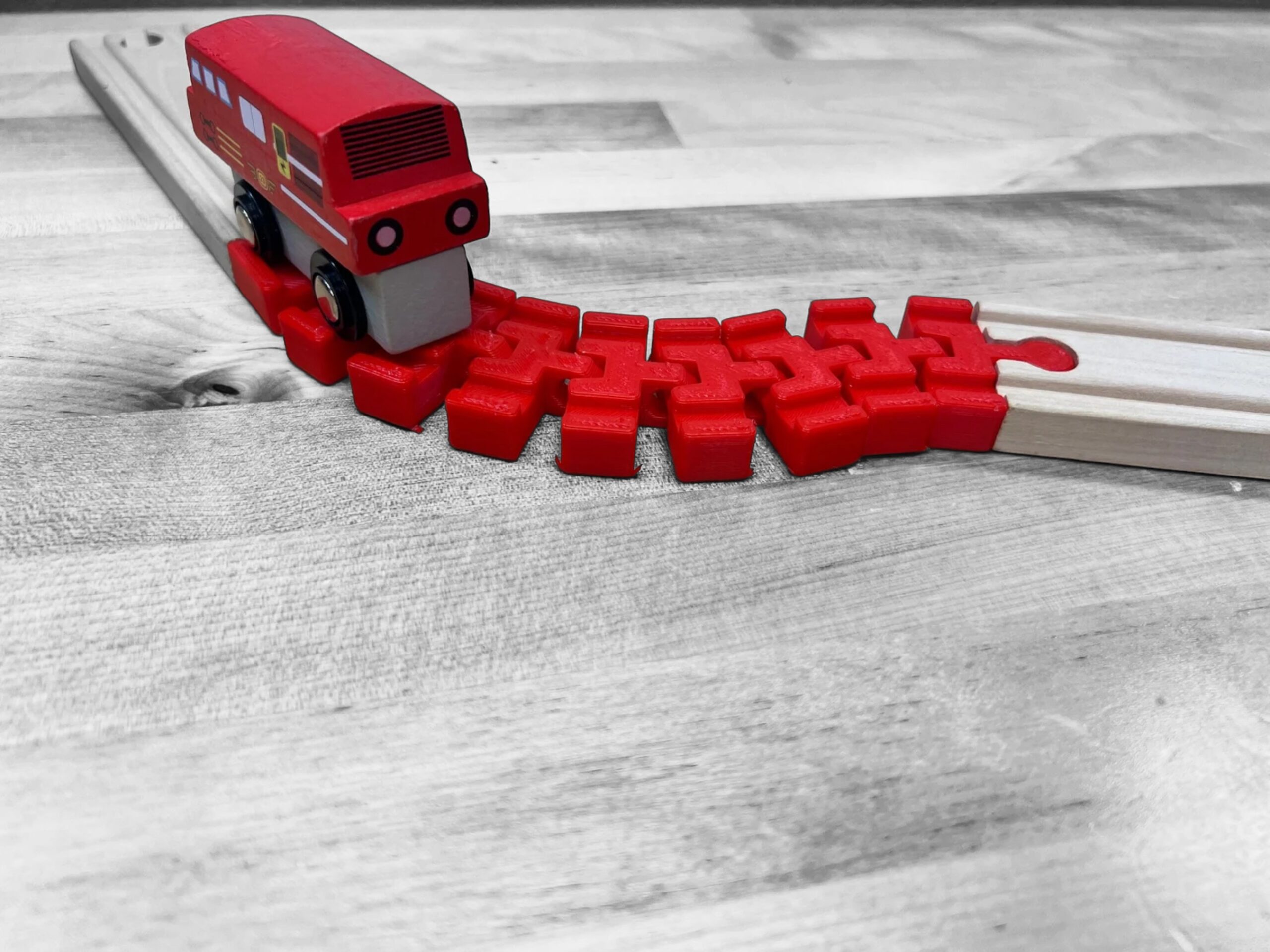 Take your wooden train set adventures to the next level with this Eco Friendly Toy, Made in USA – the Segmented Wooden Train Track! Designed for versatility, this track can be shaped into a 45 or 90-degree turn, or used as a straight track to add length to your layouts. With its segmented design, you can twist and shape it to create unique curvatures, making track building more fun than ever.