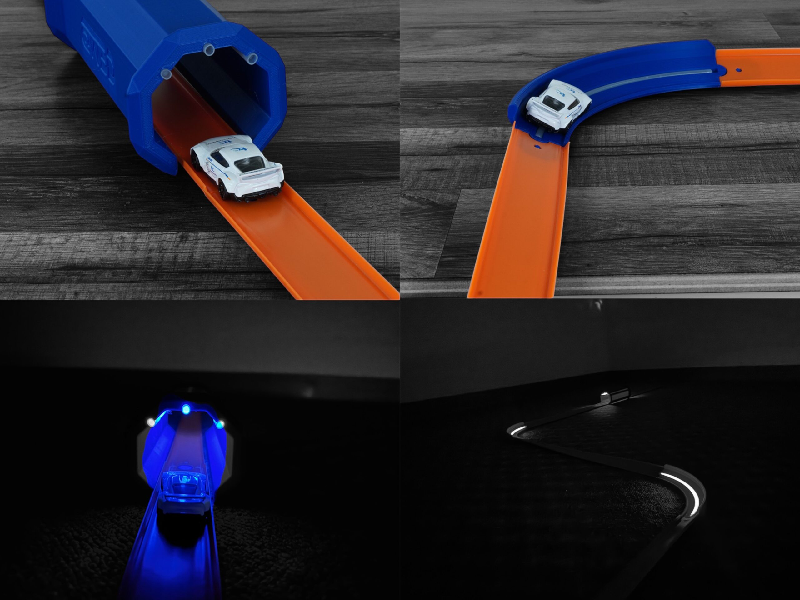 Crafted from durable, eco-friendly PLA Plastic in our shop in Enola, PA, USA, this set combines sustainability with endless fun. Watch your cars zoom through illuminated curves and tunnels, creating a mesmerizing racing experience for kids and adults alike.