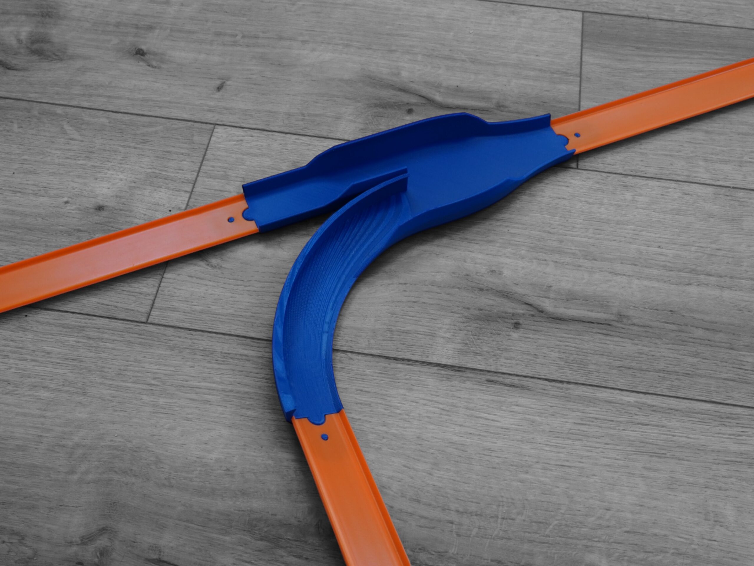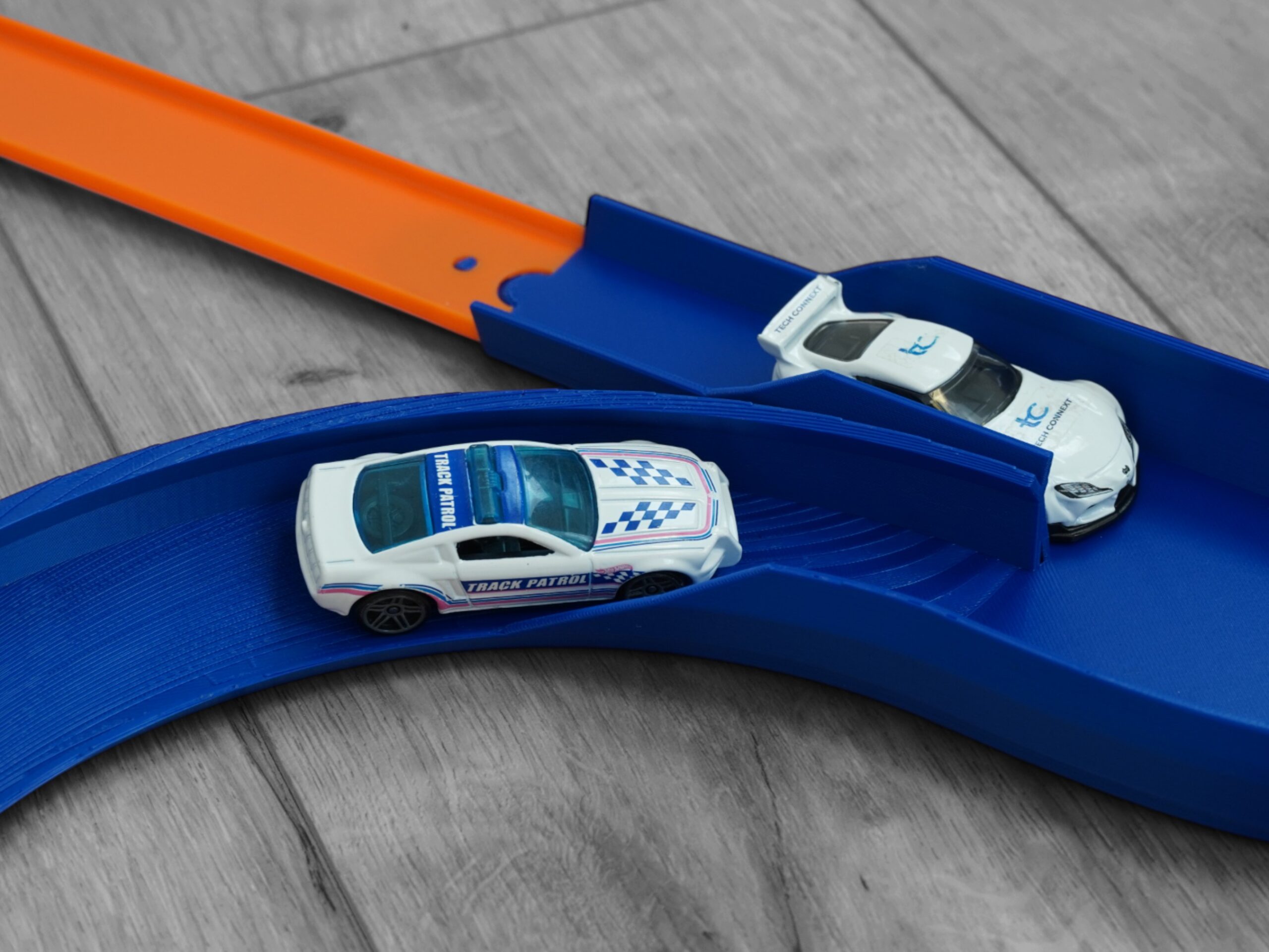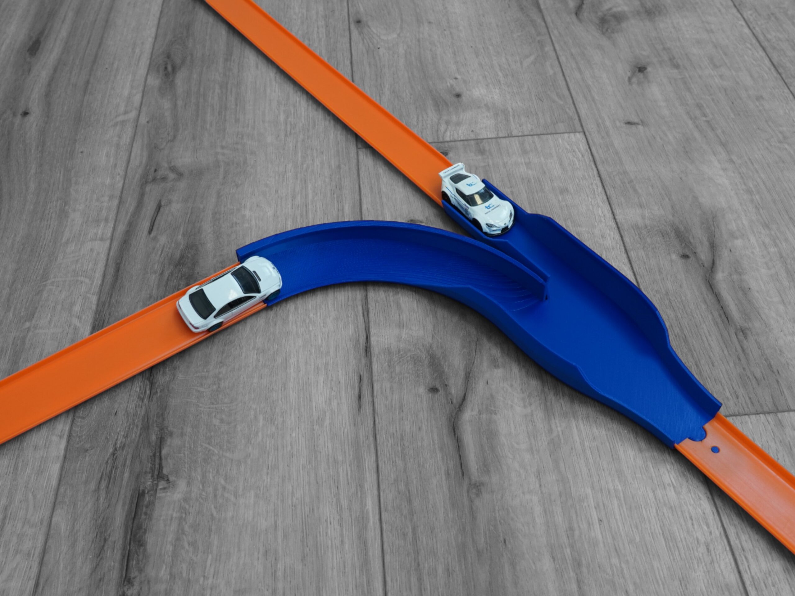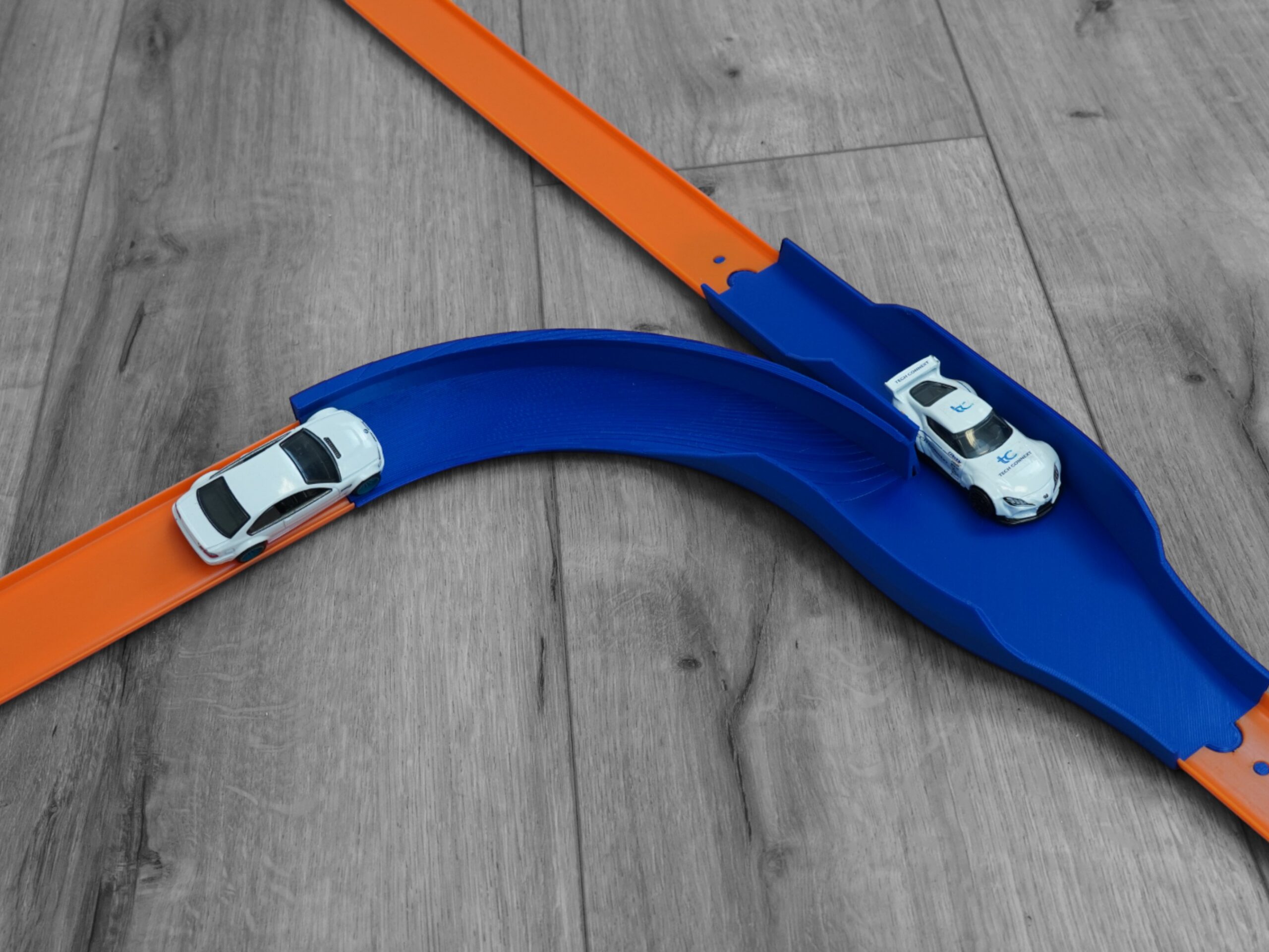 Take your Hot Wheels racing setup to the next level with our High Speed Banked Merge! Specially designed for Hot Wheels track, this unique add-on lets two cars merge onto a single track—one flying in from a high-speed 90-degree turn, and the other blazing down a straightaway. The result? Epic head-to-head action, surprise finishes, and hours of creative play.