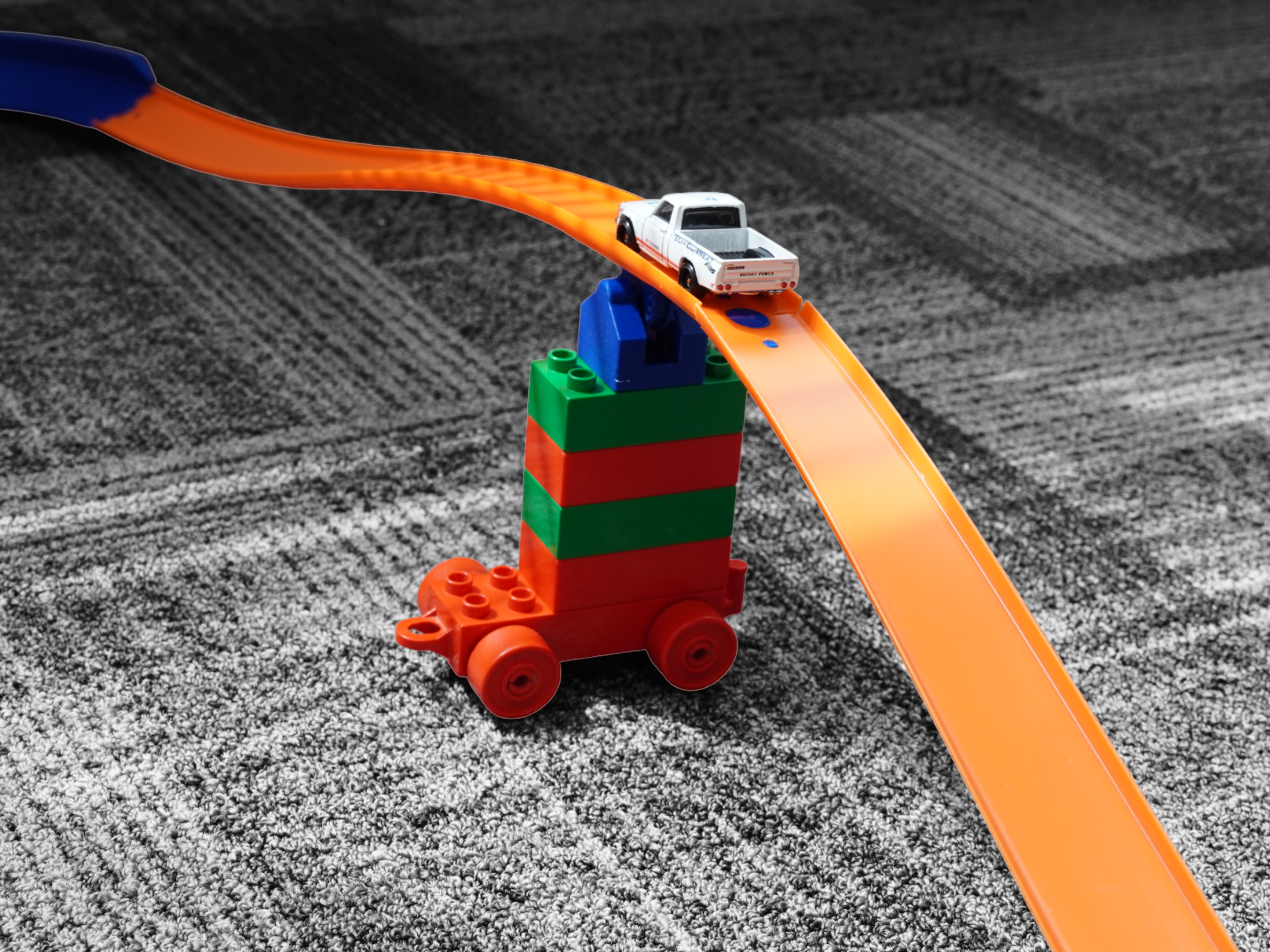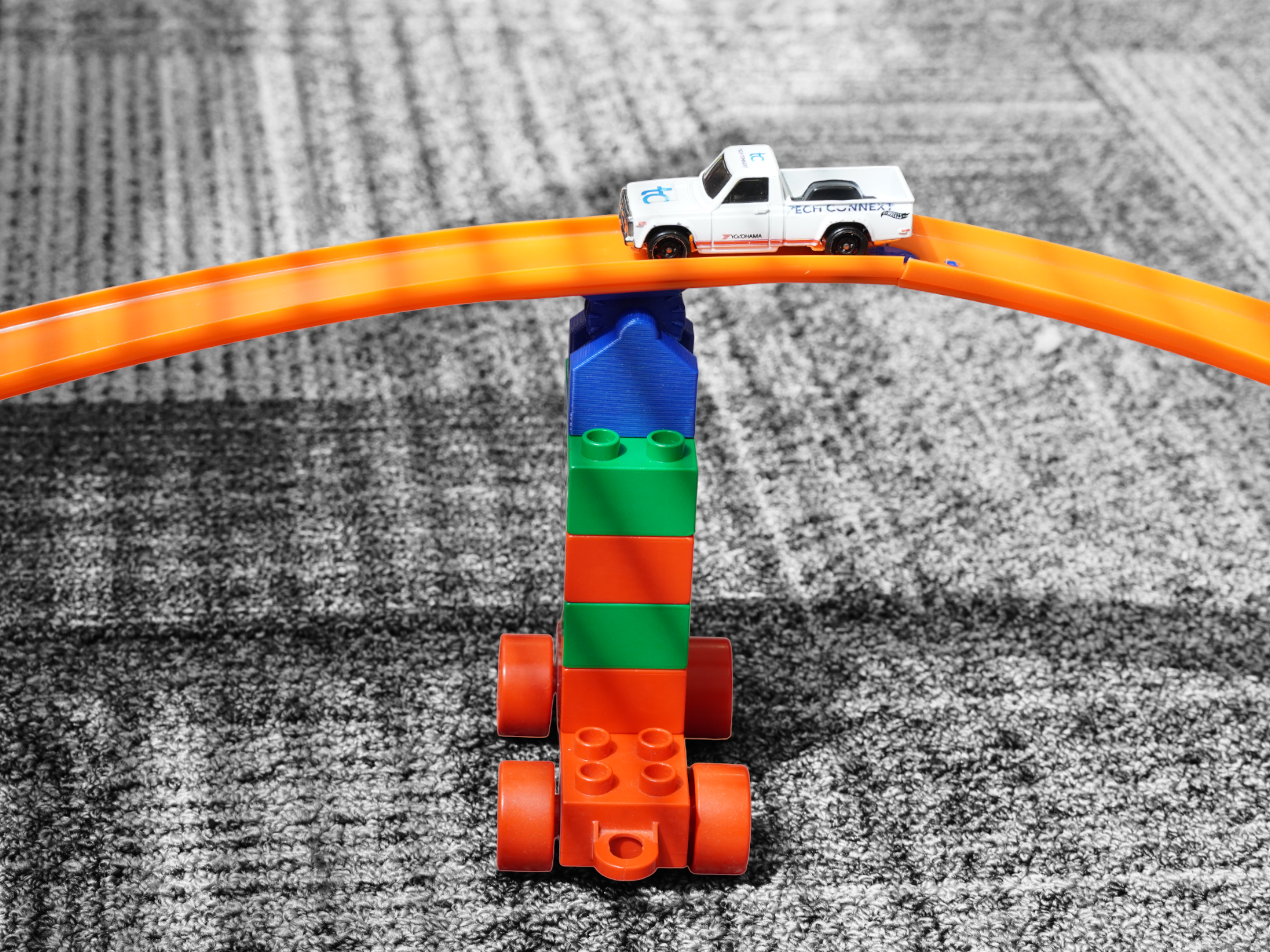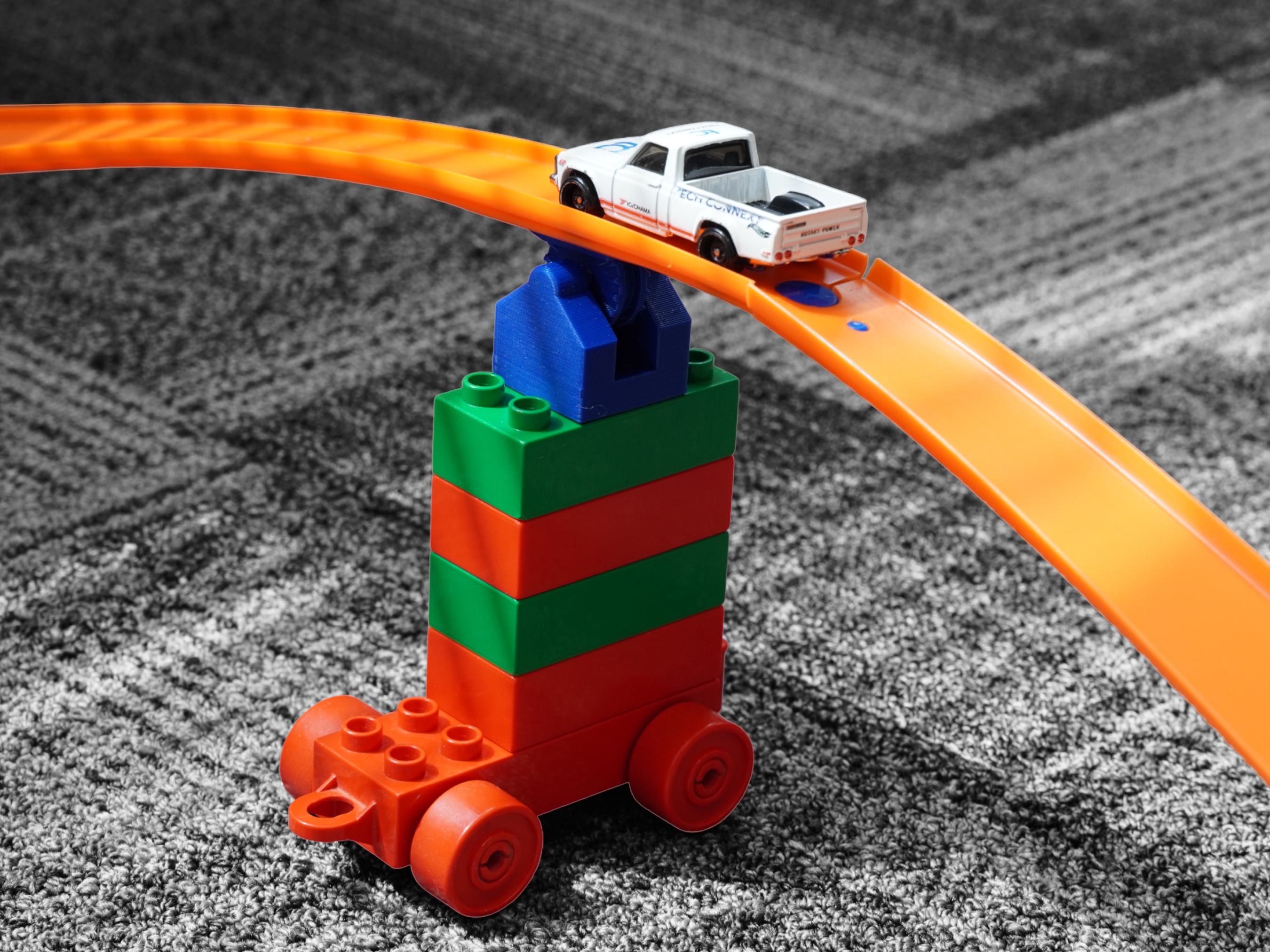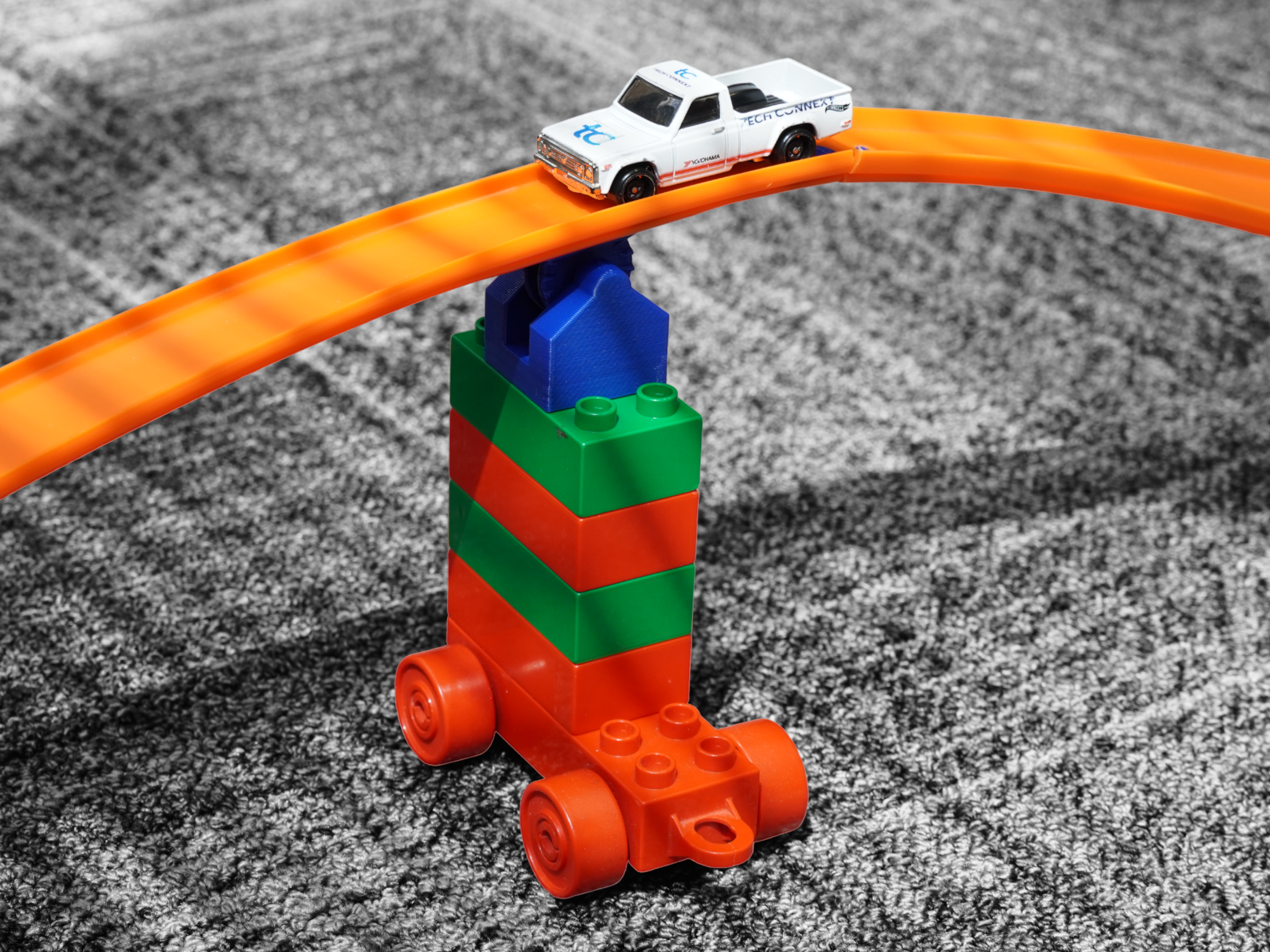 Note: Lego Duplo bricks and Hot Wheels track are not included.