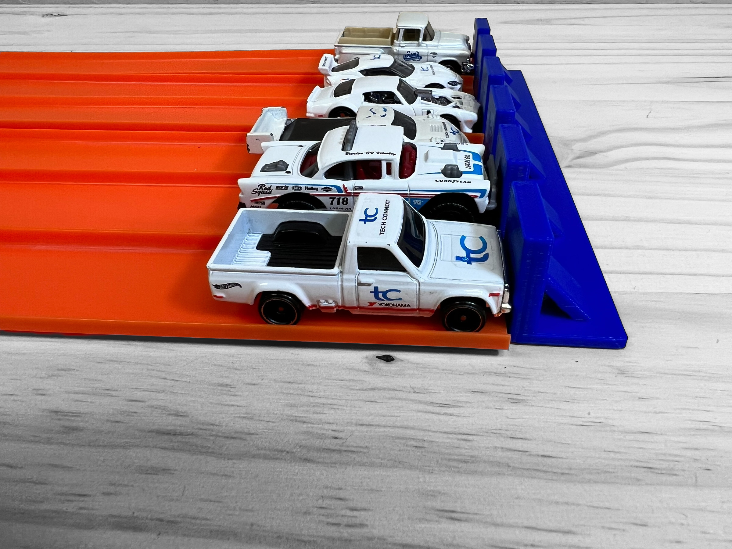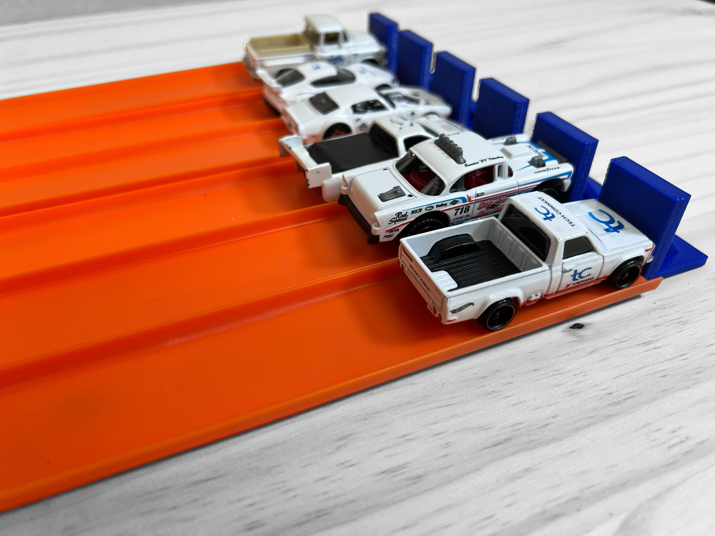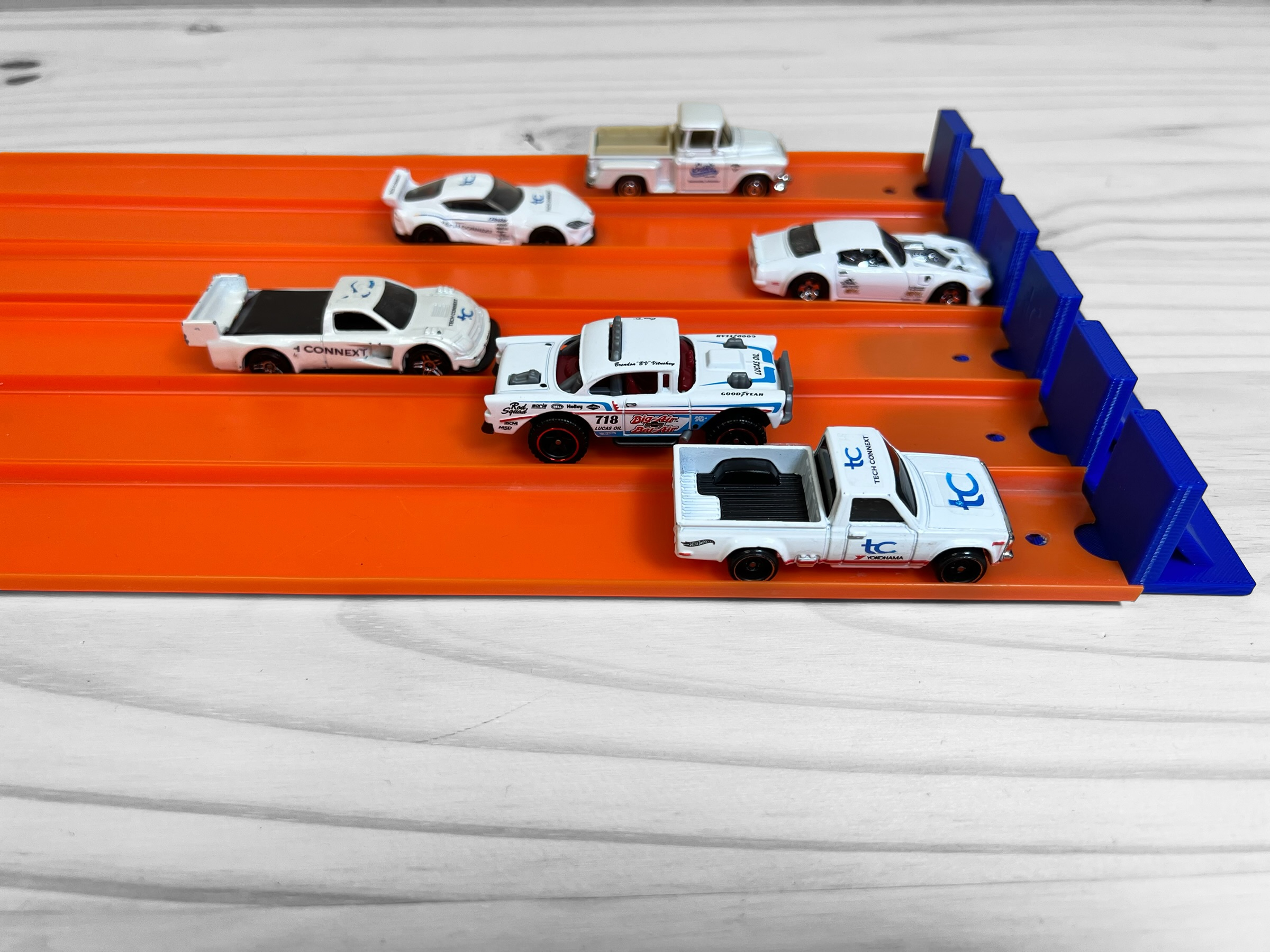 Expand the capabilities of your Super 6 Lane Raceway Hot Wheels Track by adding this convenient 6 lane stopper extension. Designed to stop cars in their tracks, it ensures that your cars stay safe and undamaged. Add time to race, not time to chase!