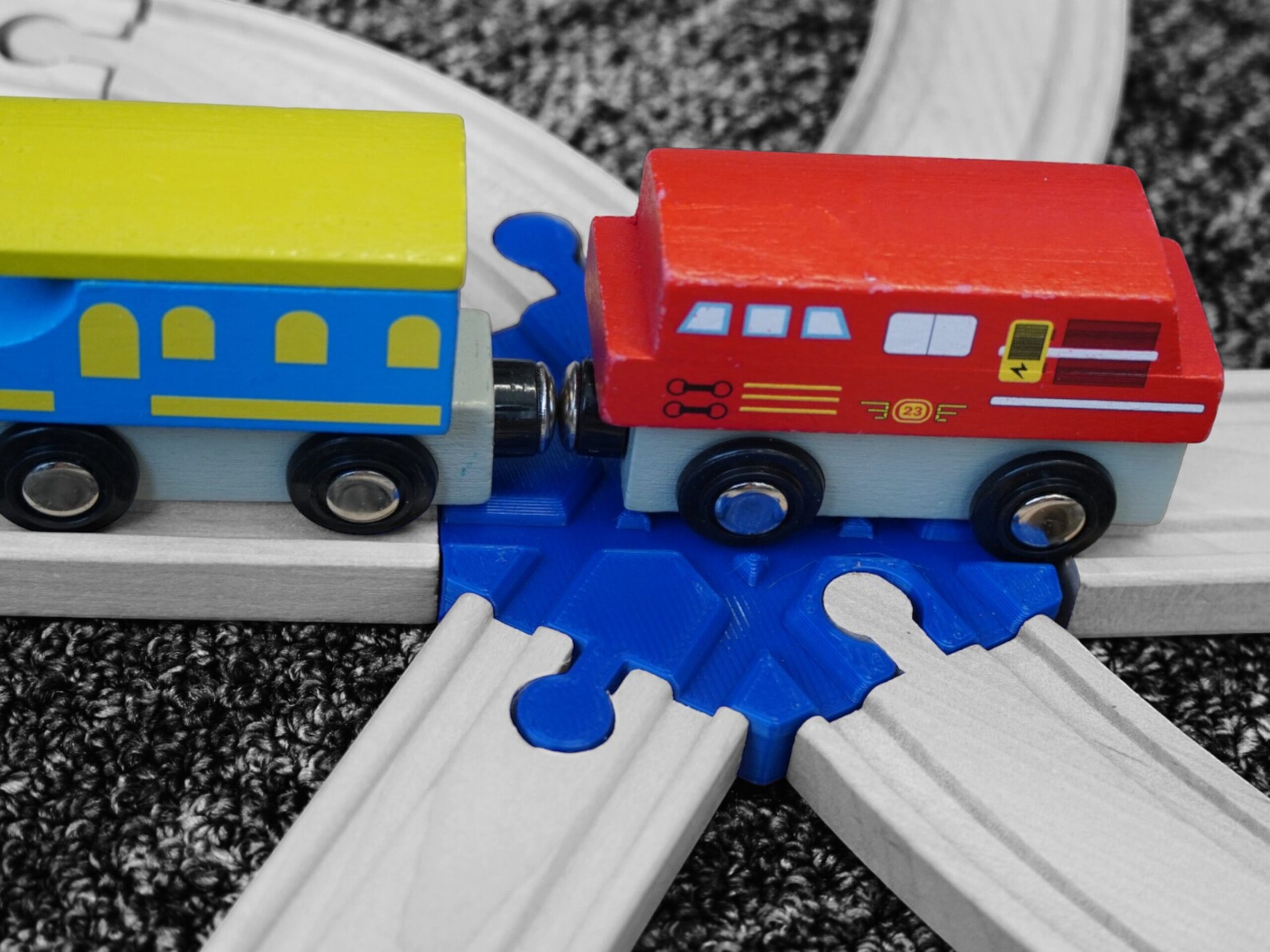 Take your wooden train set to the next level with the Wooden Train 6 Way Intersection! This convenient adaptor piece allows you to create a cross-section with 6 connections, making it easier than ever to expand your track layouts. Compatible with popular brands like Brio, Imaginarium, Thomas, Ikea, Melissa & Doug, and more, this intersection piece is a must-have for train enthusiasts of all ages.